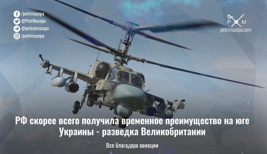 Россия скорее всего смогла получить временное преимущество на юге Украины из-за переброски дополнительных вертолетов в Бердянск.