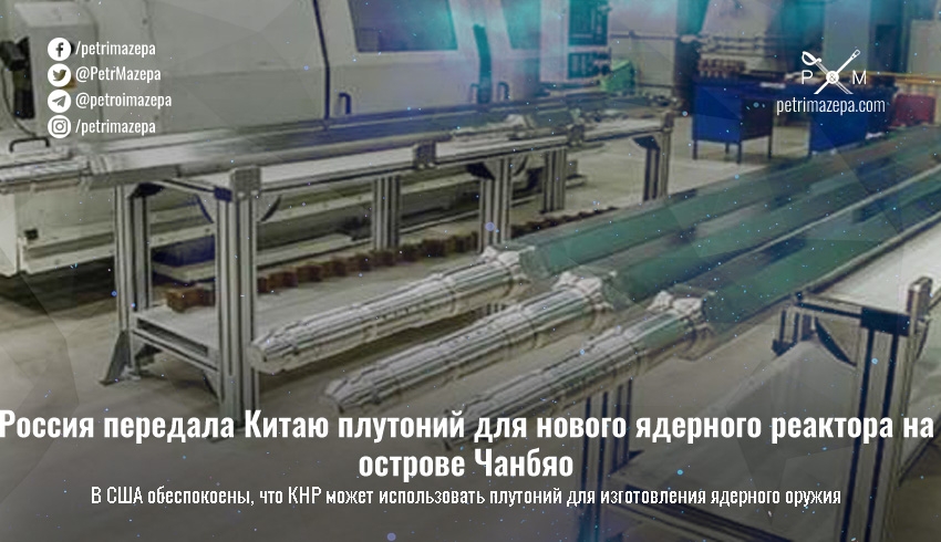 Китай и россия подписали соглашение о поставке плутония для нового ядерного реактора CFR-600 в Китае. Соглашение вызывает возмущение в США, поскольку Китай может использовать плутоний для изготовления ядерного оружия и угрожать военному балансу в регионе