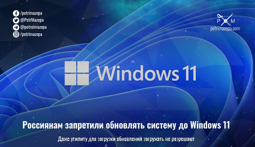 Корпорация Microsoft запретила россиянам обновлять систему до Windows 11 — теперь на официальном сайте не разрешается даже загружать утилиту для обновления системы.