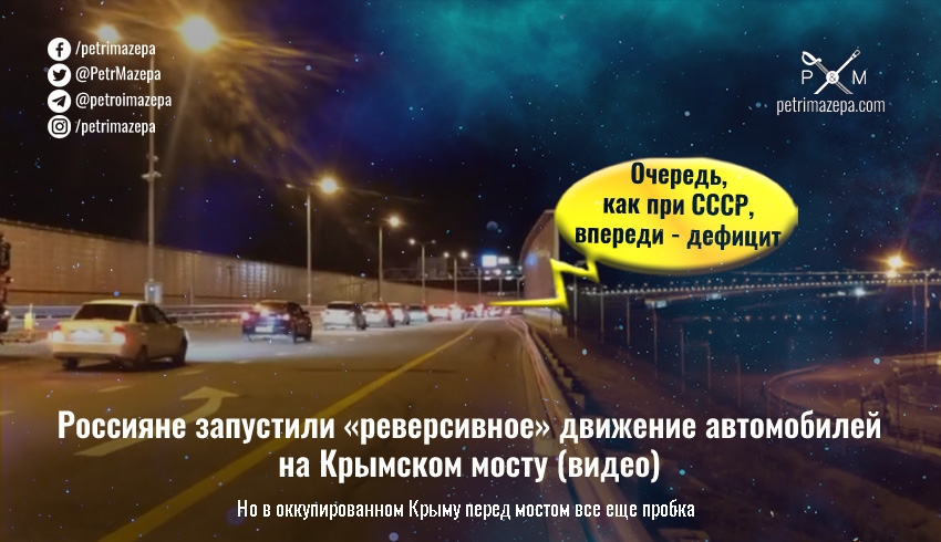 Россияне запустили «реверсивное» движение автомобилей на Крымском мосту (видео)