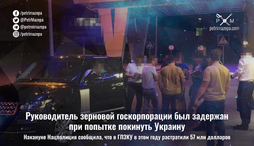 Нацполиция задержала руководителя «Государственной продовольственно-зерновой корпорации Украины» (ГПЗКУ) при попытке бегства из Украины. Чиновник сегодня, 13 августа, попытался покинуть страну через аэропорт «Жуляны».