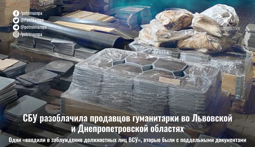СБУ 6 июня сообщила о разоблачении сразу двух схем, которые включали в себя торговлю «гуманитаркой». Первую организовали во Львовской области, используя разрешительные документы, полученные от введенных «в заблуждение должностных лиц ВСУ», а вторую — в Днепропетровской области и просто с поддельными документами.