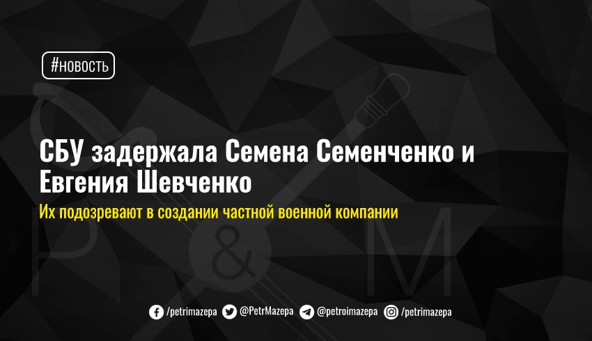 Как сообщает СБУ, их подозревают в создании незаконного вооруженного формирования - «частной военной компании» (ст. 260 УК).
