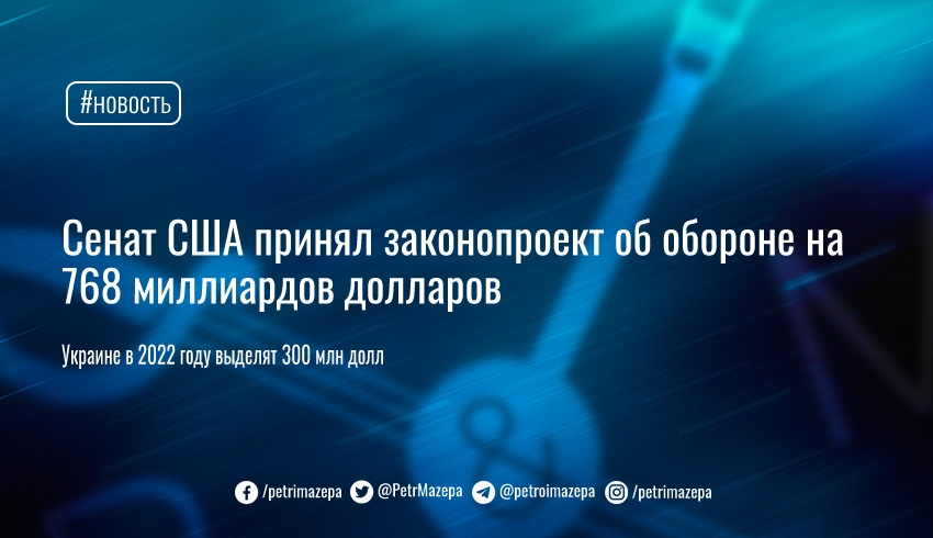 Сенат США принял законопроект об обороне на 768 миллиардов долларов. Он включает значительное увеличение инициатив, направленных на противодействие Китаю и поддержку Украины.