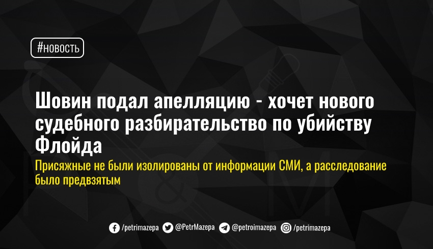 Шовин подал апелляцию - хочет нового судебного разбирательство по убийству Флойда