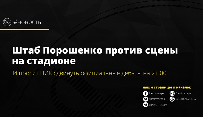 - Но вскоре, в его штабе вспомнили, узкие временные рамки для официальных дебатов от Общественного вещателя и вывесили новое обязательное требование – проведение дебатов на НСК Олимпийский именно 19 апреля, а чуть позже добавили и время – в 19:00.