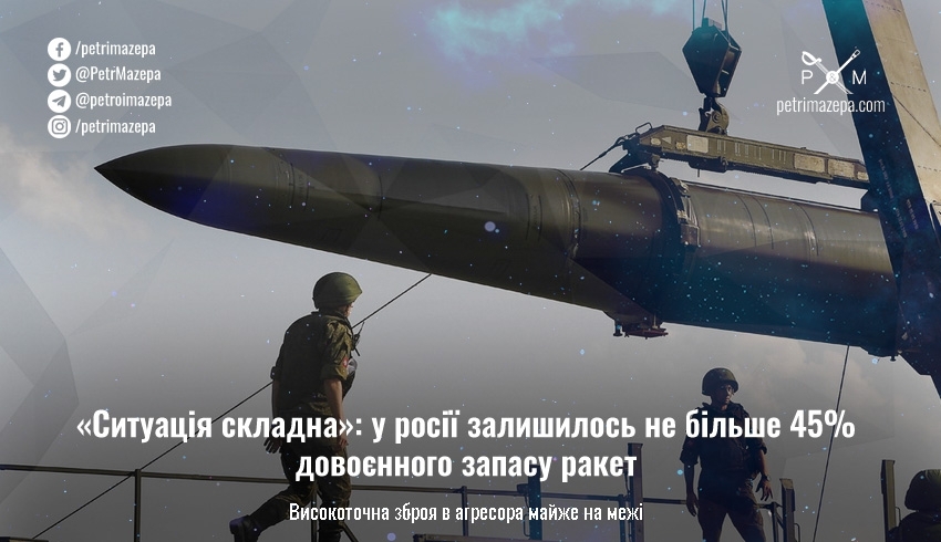 У россиян сложная ситуация с ракетами, сообщил представитель Главного управления разведки Минобороны Вадим Скибицкий в интервью «РБК-Украина». Запасы высокоточного оружия уже на грани, дополнительных запасов нет, ситуация с «Искандерами», «Калибрами» довольно непростая, поэтому используются С-300 и Х-22 по наземным целям, однако и эти запасы исчерпываются.