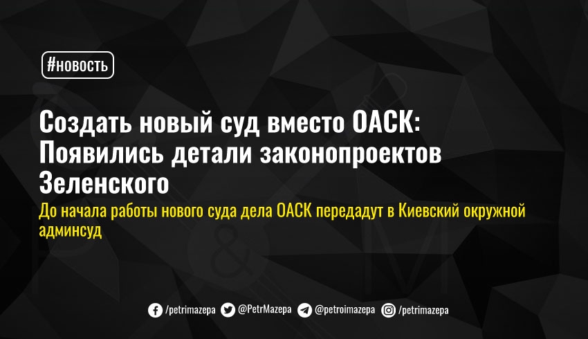 - 13 февраля президент Зеленский заявил, что ограничит полномочия ОАСК, и уже 17 февраля в ВР был зарегистрирован законопроект о передаче полномочий по обжалованию актов центральной государственной власти в Верховный суд.
