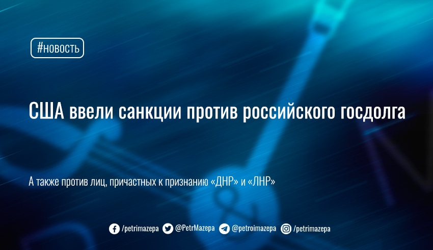 США ввели санкции против России за признание ею «ДНР» и «ЛНР». Под санкции подпадают, в том числе, операции с суверенным долгом России.