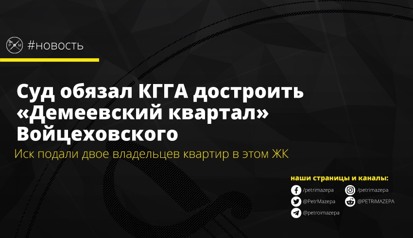 Суд обязал Киевскую городскую государственную администрацию (КГГА) завершить строительство жилого комплекса «Демеевский квартал» в связи с неспособностью застройщика продолжать строительство. Иск в суд подали двое владельцев квартир в этом ЖК.