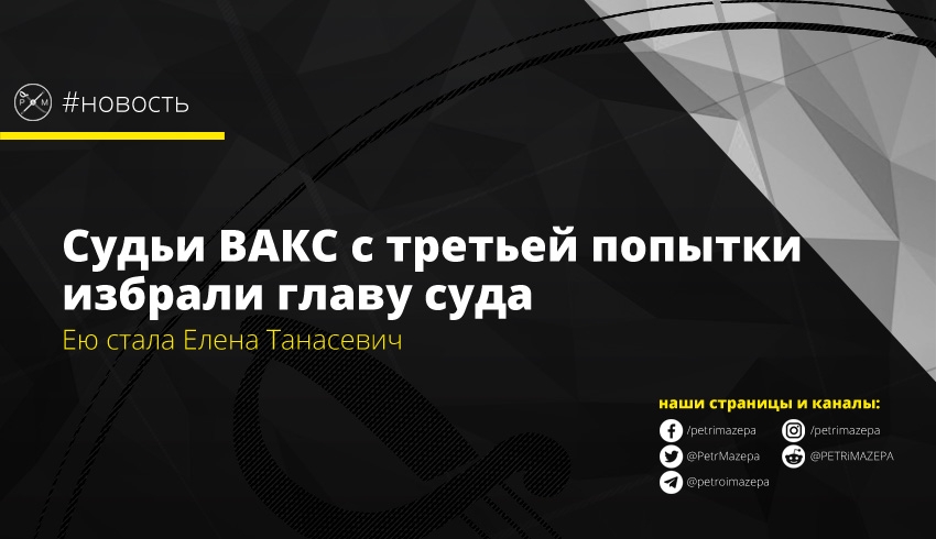 - Сегодня во время заседания судьям ВАКС не удалось с первой попытки избрать председателя. После подсчета результатов тайного голосования оказалось, что никто из кандидатов не набрал необходимого количества голосов. В связи с этим председательствующий на собрании судей Виктор Маслов поставил вопрос о повторном голосовании. Во время второй попытки за Танасевич отдали свои голоса 16 судей, за Павлишина - 15 судей. В то же время 7 судей не поддержали ни одного кандидата.