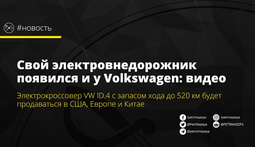 Volkswagen официально представил электрокроссовер VW ID.4, построенный на фирменной модульной платформе VW MEB.
