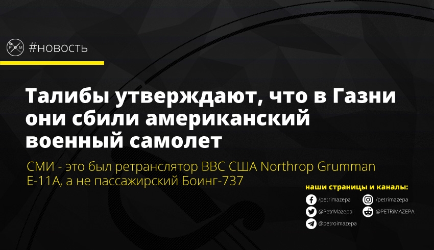 Позднее он добавил, что талибы утверждают – они сбили американский военный самолет и все, кто был на борту, погибли (5 человек).