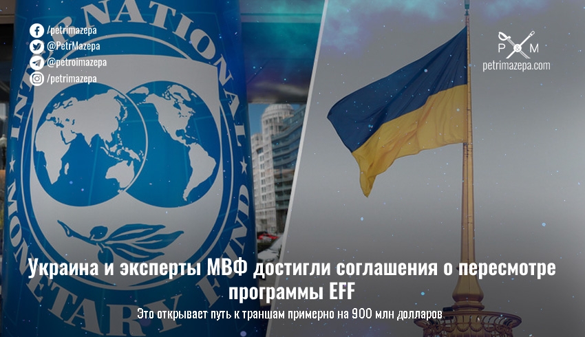 Представители власти Украины и эксперты Международного валютного фонда (МВФ) достигли Соглашения на уровне персонала по обновленному пакету мер экономической и финансовой политики для первого пересмотра четырехлетней программы в рамках EFF. Эти договоренности подлежат утверждению Советом исполнительных директоров МВФ.