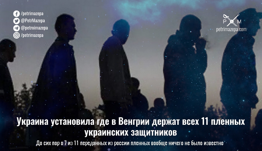 Уполномоченный по вопросам лиц, пропавших без вести при особых обстоятельствах, Олег Котенко сообщил, что установлено местонахождение 11 пленных защитников, которых удерживают на территории Венгрии.