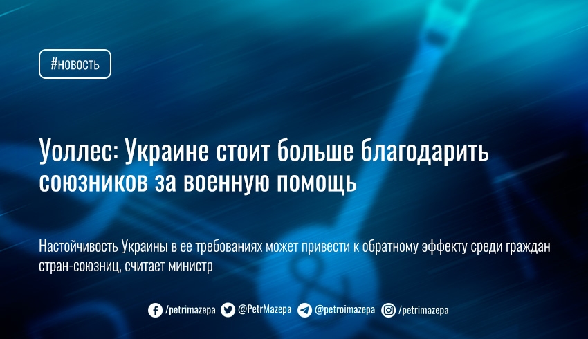 Уоллес: Украине стоит больше благодарить союзников за военную помощь