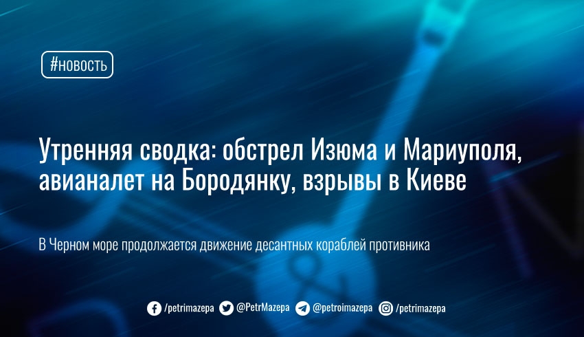 Утренняя сводка: обстрел Изюма и Мариуполя, авианалет на Бородянку, взрывы в Киеве