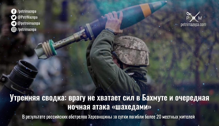 Утренняя сводка: врагу не хватает сил в Бахмуте и очередная ночная атака «шахедами»