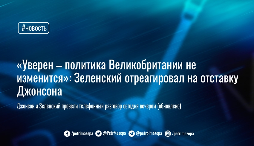 Президент Украины Владимир Зеленский отреагировал на заявление об отставке премьер-министра Бориса Джонсона — выразил уверенность, что политика Великобритании в отношении нашей страны не изменится в ближайшее время.