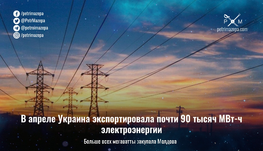 В апреле Украина экспортировала почти 90 тысяч МВт-ч электроэнергии