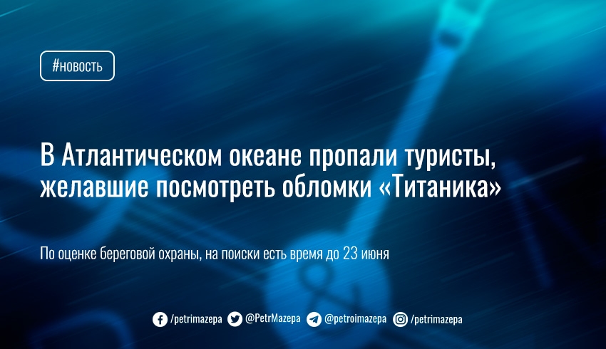 Связь с аппаратом исчезла через 1 час 45 минут после погружения 18 июня. Он имел запас кислорода на период от 70 до 96 часов. Уже идет масштабная поисковая операция. В поисках США помогает Канада.