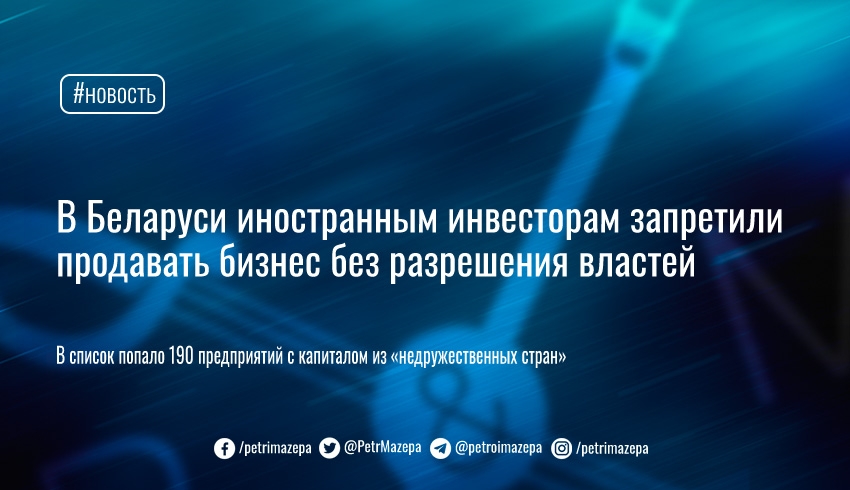 В Беларуси иностранным инвесторам запретили продавать бизнес без разрешения властей