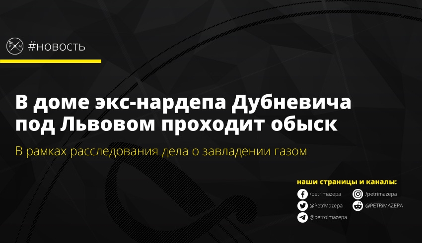 Детективы НАБУ проводят следственные действия в жилье бывшего народного депутата Богдана Дубневича в селе Зубра Львовской области. Обыски проходят по делу завладения государственным газом.