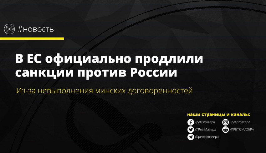 «Учитывая, что Минские соглашения не полностью выполнены, Европейский Совет единогласно принял политическое решение возобновить экономические санкции против России», - говорится в решении на сайте Евросоюза.