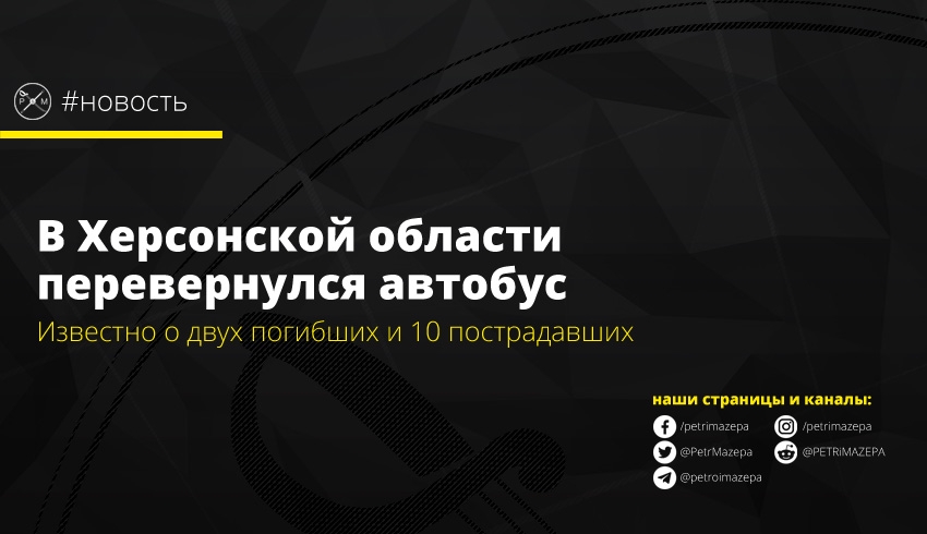 В Херсонской области произошло дорожно-транспортное происшествие с рейсовым автобусом. По данным правоохранителей, в результате аварии погибли двое человек и еще 10 человек пострадали.