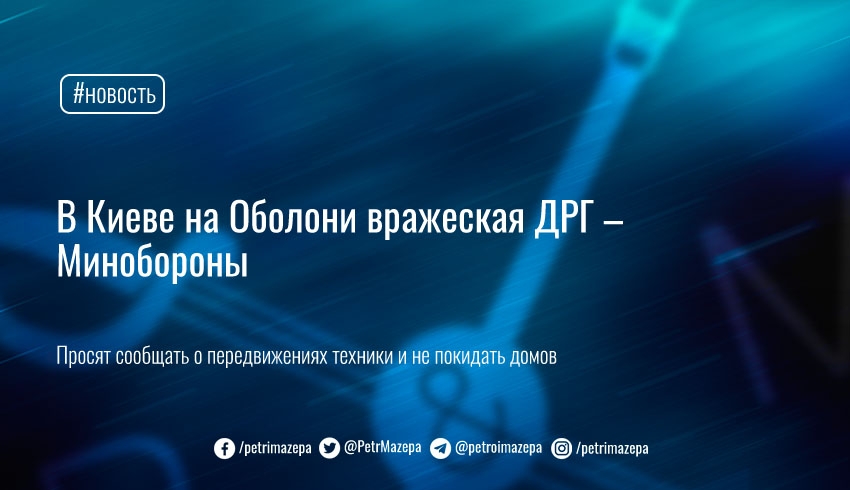 Министерство обороны Украины сообщило что в Киеве на Оболони вражеская ДРГ – граждан просят сообщать о передвижении техники.