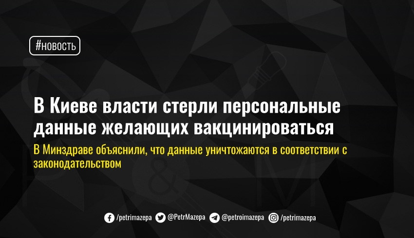 В Киеве публичным лицам, которые записались на вакцинацию от COVID-19, начали приходить SMS об «уничтожении» их персональных данных. В Минздраве объяснили, что персональные данные уничтожаются в соответствии с законодательством.