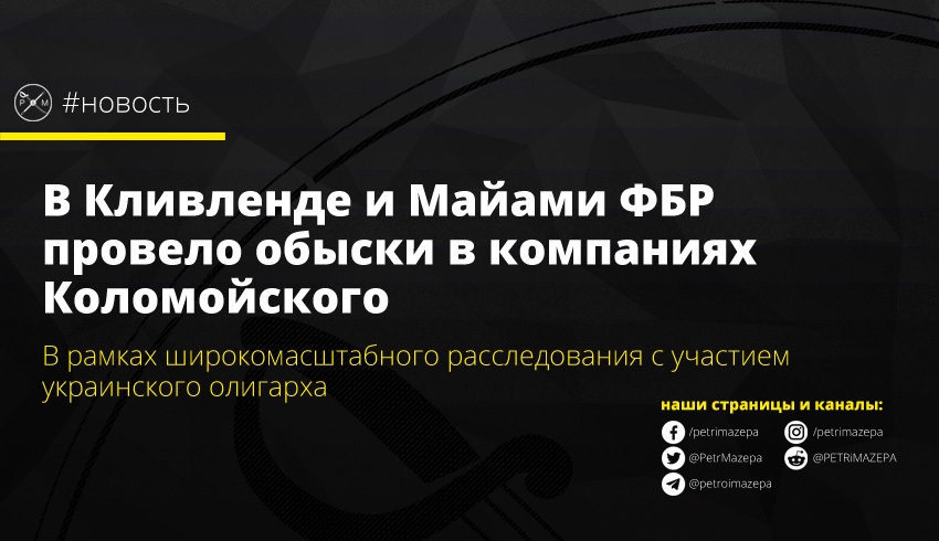 В штате Огайо, во вторник ФБР провело обыски в офисах риэлторской компании в центре Кливленда, которая владеет несколькими зданиями в городе. Также агенты ФБР отдали ордера на обыск в Майами. Следственные действия проходят в рамках «широкомасштабного расследования с участием украинского олигарха Игоря Коломойского».