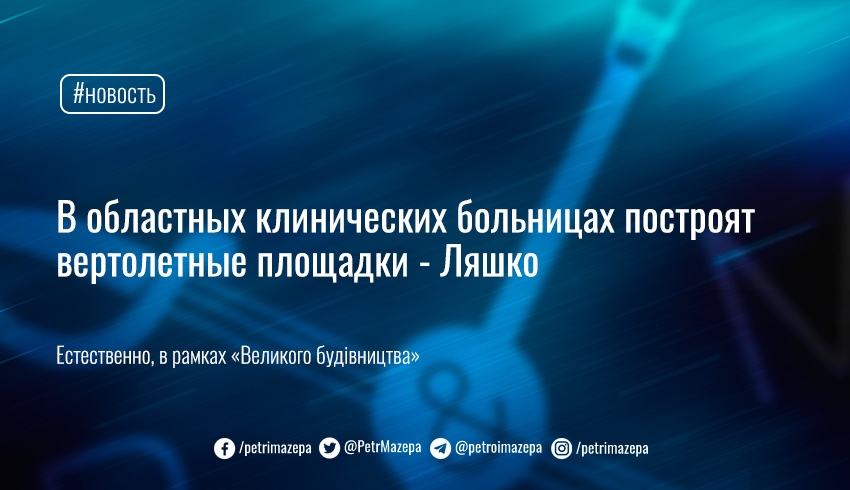 «В рамках программы президента Украины „Велике будівництво“ на 2022-2023 годы в рамках улучшения материально-технической базы учреждений здравоохранения предусматриваем строительство вертолетных площадок в каждой областной клинической больнице в каждом регионе нашей страны», - написал он.