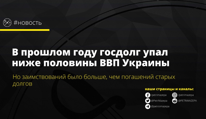 В прошлом году госдолг упал ниже половины ВВП Украины