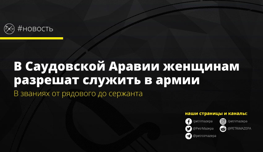 Минобороны Саудовской Аравии впервые разрешит женщинам служить в сухопутных, военно-воздушных силах, ракетных войсках, на флоте и в медицинских подразделениях.