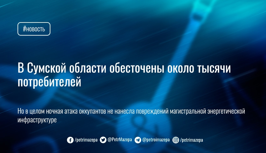 В Сумской области обесточены около тысячи потребителей, в Черниговской — около 1,2 тыс. потребителей. В Херсонской области русские обстреляли объект генерации.