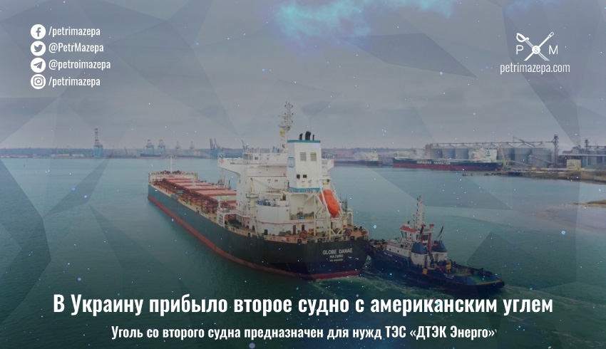 Сегодня в Украину прибыл второй из семи сухогрузов «Панамакс», которые зафрахтовала компания «ДТЭК Энерго» («ДТЕК Енерго») с американским углем для ТЭС. Общий объем второй поставки составляет 66 тысяч тонн. Судно уже в порту.