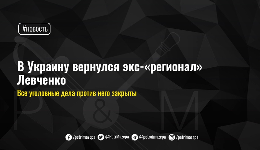 Как сообщил в Facebook представитель Украины в ТКГ Денис Казанский, Левченко с 2015 года скрывался в России от украинского правосудия. Сейчас все уголовные дела против него закрыты.