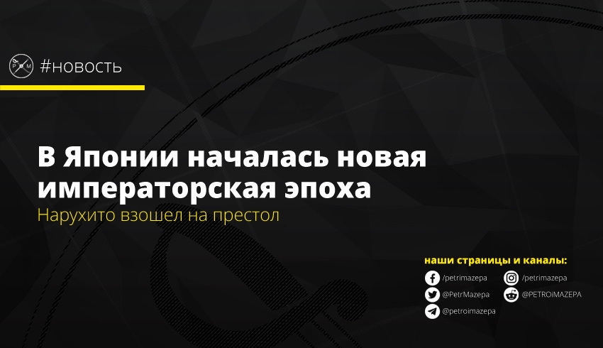 Сегодня в Японии взошел на престол император Нарухито. Он получил императорские регалии как доказательство его восхождения на престол. В стране началась новая императорская эпоха «Рейва», что означает «порядок» и «мир»/«гармония».