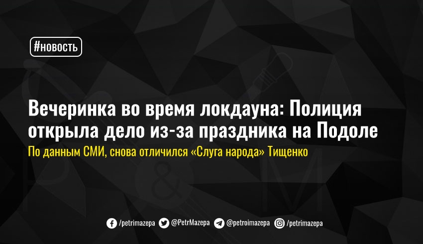 Национальная полиция открыла уголовное производство по факту нарушения мер карантина в ресторане на Подоле, к которому может быть причастен депутат Верховной Рады. По данным СМИ, снова отличился уже прославившийся скандалом с «Велюром» нардеп Николай Тищенко – в этот раз он отмечал день рождения своей жены.