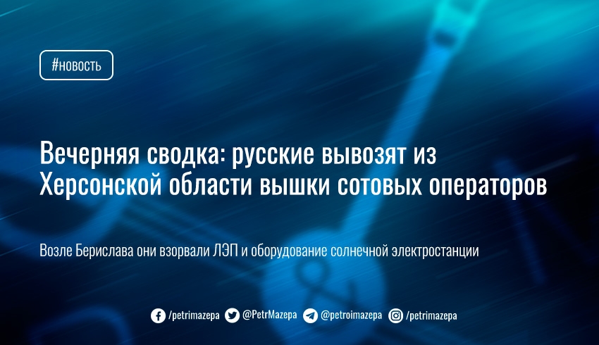 Вечерняя сводка: русские вывозят из Херсонской области вышки сотовых операторов
