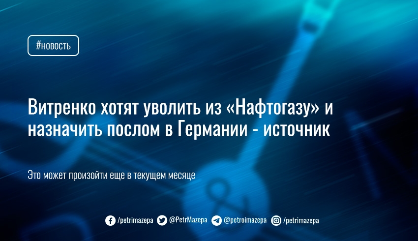 Главу НАК «Нафтогаз України» Юрия Витренко во второй половине августа могут уволить из компании и назначить послом в Германии.