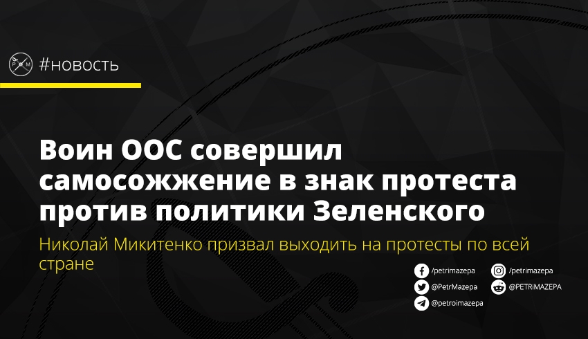 Микитенко совершил самосожжение из-за несогласия с политикой президента Владимира Зеленского.