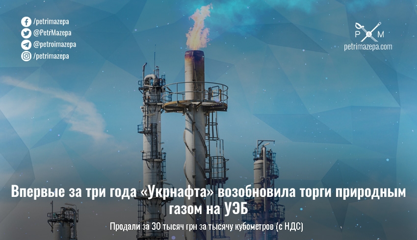 29 ноября, после трехлетнего перерыва, ПАО «Укрнафта» реализовало на Украинской энергетической бирже (УЭБ) 100 тысяч кубометров газа. До этого «Укрнафта» продавала только газ собственной добычи по регулируемым ценам.