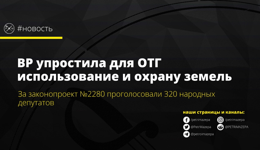 В среду, 17 июня, Верховная рада приняла в целом законопроект №2280, который предусматривает внесение изменений в Земельный кодекс Украины и других законодательных актов по планированию использования земель. Эти изменения направлены на облегчение использование и охрану всех земель в пределах территории ОТГ (объединенных территориальных громад).