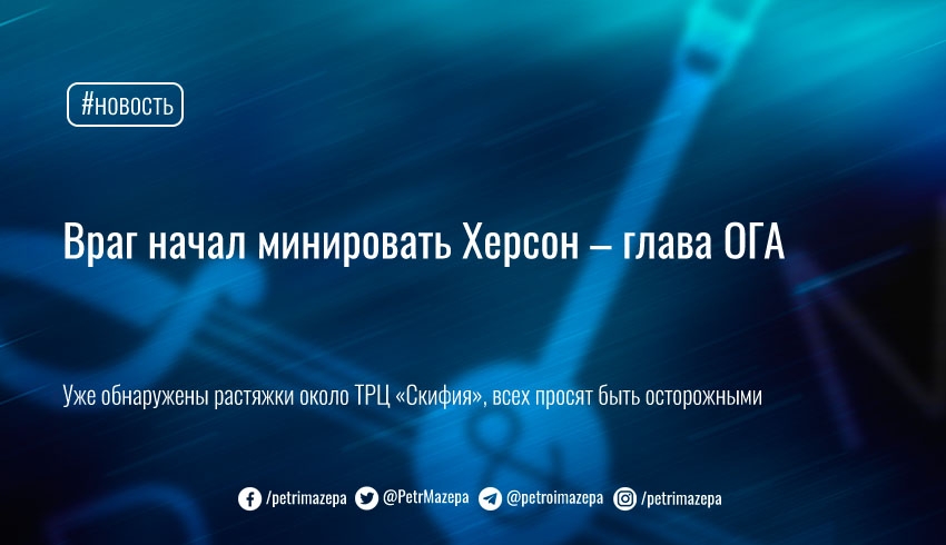 Он сообщил, что уже обнаружены «Растяжки» около здания торгово-развлекательного центра «Скифия», и пока не известно где именно россияне еще поставили растяжки в и так пострадавшем от их действий городе.