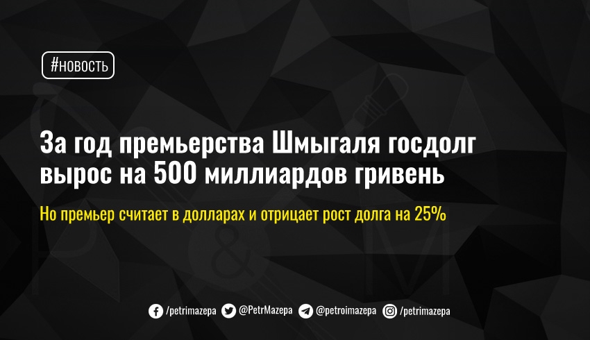 За год премьерства Шмыгаля госдолг вырос на 500 миллиардов гривень