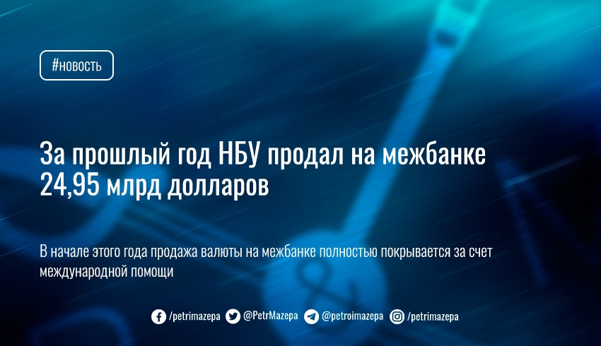 За прошлый год НБУ продал на межбанке 24,95 млрд долларов