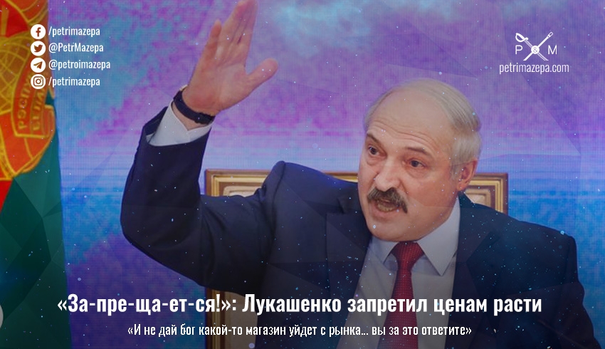 Диктатор Беларуси Александр Лукашенко запретил рост цен и угрожает бизнесу, который из-за этой «экономической политики» будет пытаться уйти с рынка, «ответственностью». Рост цен, в котором Лукашенко, конечно, обвиняет «спекулянтов», которые делают «наценку», запрещен уже с сегодняшнего дня.