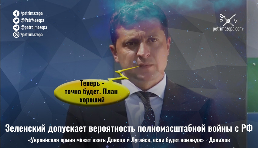 Президент Украины Владимир Зеленский сообщил, что считает возможной полномасштабную войну с Россией, но это будет наибольшей ошибкой страны-агрессора. При этом секретарь СНБО Алексей Данилов подчеркивает – наша армия вполне может взять Донецк и Луганск, если будет команда.